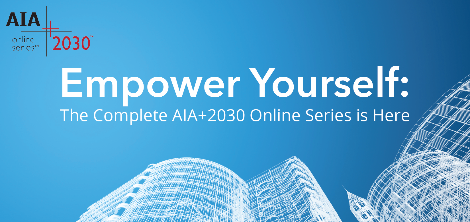 The AIA+2030 Online Series is based on the highly successful AIA+2030 Professional Series that has been offered to over 30% of AIA’s membership in 25 markets throughout the United States. The Professional Series was originally created by AIA Seattle and Architecture 2030, with support from the City of Seattle and the Northwest Energy Efficiency Alliance.