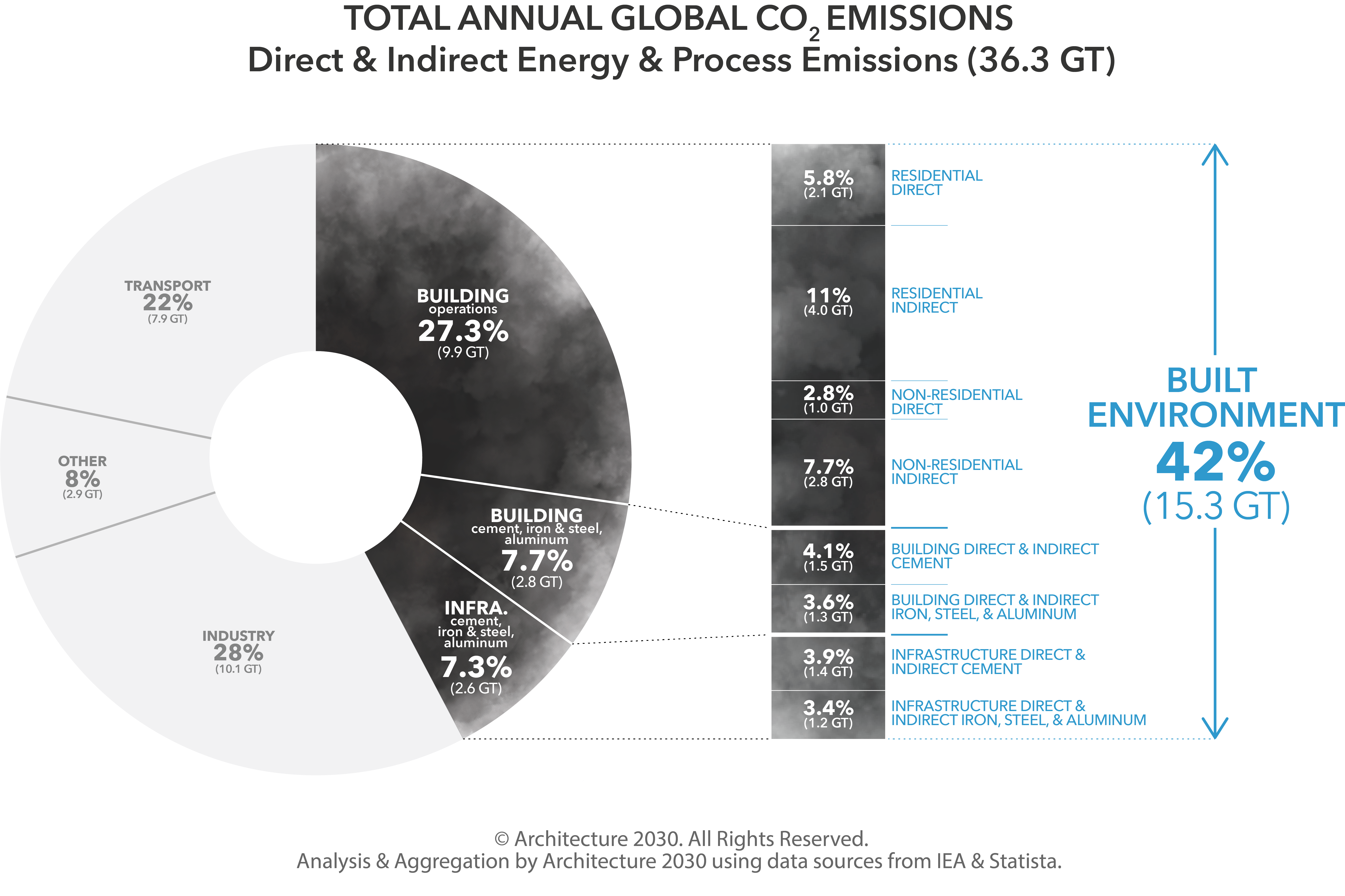 Architecture 2030’s mission is to rapidly transform the built environment from the major contributor of greenhouse gas emissions to a central solution to the climate crisis.